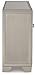 MODERN GLAM: Decorated with faux crystal and chrome-tone pulls, the textured silvertone door fronts open to reveal adjustable shelving to meet all your storage needs