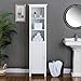 QUALITY LINEN TOWER: This tall storage cabinet is made of quality MDF, decorative paneling, and nickel drawer pull, adding style and charm. With an anti-tip device, the bathroom floor cabinet can be tightly secured to the wall for security and stability.