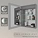 【ONE-TOUCH DEFOGGING SWITCH】: The LED medicine cabinet comes with a defogging switch that provides high-definition images and clear mirror reflection after bathing. The mirrored central panel defogs for 10-15 minutes and automatically turns off after 30 minutes to save energy. With mirrors inside and outside the cabinet doors, you can see yourself from all angles, perfect for bathrooms, bedrooms, and powder rooms.
