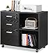 DURABLE & STABLE STRUCTURE: Made of top-grade board for long-term use, the office file cabinet is scratch-resistant and water-resistant, and can support weights up to 150lbs. Rolling on 5 wheels (including 2 lockable casters), this wood filing cabinet can keep stable with the braking function or move freely according to your need.