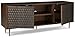 HANDSOMELY MADE: Crafted with mango wood. Door fronts with scooped pattern. Metal door pulls and legs. Includes 2 doors with soft-close hinges; 3 shelves. Openings in back for electronics