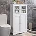 Perfect for What You Need - organization for your stuff. You could use the bottom part to store towels and the upper part holds lotion, shampoo, laundry supplies and hair brushes. The clear glass doors allow you to know where the daily necessities are before you take them out, and a combination of adjustable and fixed shelves allows you to store items in various sizes as your need.