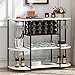 【Multi-Functional Bar Cabinet for Home】Display your favorite bottles in minimalist inspired style with this freestanding coffee bar cabinet with storage. Provides you a relaxing bar space to enjoy your quality time after long day working. It features two mesh doors that open to reveal the stemware holder, as well as ample storage space for spirits, while wine racks on right side allow you to keep favorite vintages close at hand.