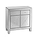 Reflective mirrored surface on all visible sides; unfinished back; Angular etching, crystal style knobs evoke high-end style