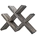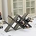 Modern cross style design tabletop wine rack with vintage gray wood finish; holds up to 7 standard sized wine bottles