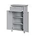 Single door floor cabinet features two open shelves and an interior adjustable shelf, perfect for storing extra towels, toiletries, cleaning supplies and more