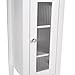 Features a reeded glass door with soft-close hinges, white painted finish and polished silver doorknob