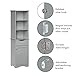 Features three open shelves and two interior shelves, making an ideal addition to bathrooms, living rooms, dining rooms and more