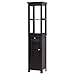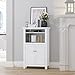 QUALITY LINEN TOWER: This tall storage cabinet is made of quality MDF, decorative paneling, and nickel drawer pull, adding style and charm. With an anti-tip device, the bathroom floor cabinet can be tightly secured to the wall for security and stability.