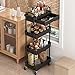 【360°Rotating & Space Saver Storage Cart】- 360°Smooth inner rotating round basket design, less space using, ensures you put it anywhere, organize your items quickly and easily, suitable for kitchen, bathroom, bedroom, living room and office. Height adjustable plate makes it more free for you to organize and save space the way you like, can hold snacks, fruits, vegetables, books, toys etc, meets your mutiple needs.