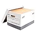 Cut-out handles for easy lifting and transporting. Eco-friendly choice with at least 50% post-consumer content. 12 boxes per carton. Can be used for letter or legal files, stacking/storage. EZ fold technology for quick one-step assembly, self locking lift off lid. Includes pre-printed write-in information area. Contains 100% recycled content.
