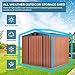 【All-Weather Use】Constructed with rust-resistant and UV-resistant galvanized steel, this shed is designed to withstand all weather conditions. Its high-pitched roof allows rain and snow to slide off easily, the four ventilation vents ensure proper airflow and prevent dampness.