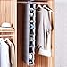Expandable closet organizer with 2 adjustable-width hanging rods that can be moved up/down in 1-inch increments