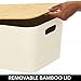 PORTABLE: Bin features easy-carry, built-in integrated bamboo handles that make it simple to grab off a shelf or out of a closet and take it to wherever it's convenient for you; Just grab and go; The perfect solution for organizing overcrowded and unorganized closets throughout the home; Perfect for controlling and containing clutter in busy households; Use side by side on shelves or in cabinets to create a larger storage system or use individually