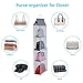 ♫ DETACHABLE DESIGN TO FIT DIFFERENT TYPES OF CLOSET -- This closet purse organizer is adaptable and fit all types of closet, maximum utilization of vertical space, it can be split into 2 closet purse organizer which making it perfect for small closets. easy to fold when it is not in use.This purse holder has two free stainless steel hanger ,easy to hang on any standard garment rods, closets, doors, shelves .Suitable in bedrooms, living rooms, hallway or linen cupboards, wardrobe.
