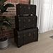 FEATURES RECTANGLE TRUNK: Stackable storage trunks feature three varying size chests with faux leather buckle straps, bolted handles and rivet detailing for a realistic touch