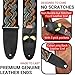 It's made of 2.36" durable polyester material and double-layered premium leather ends with 3 pick holders