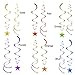 Rainbow Star Swirl Decorations Package includes 36 Birthday Swirl Decorations total with 18 Blue double-swirl Decorations measuring 20in long and 18 swirls with Hanging Star measuring 24in long