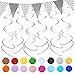 【Shiny Foil swirls decoration】Package contains 30 pieces party swirls decoration measuring 20in long and a 12-piece pennant set. Each ceilinc swirls splits from the middle, which can also be called double swirls, so it is more Shiny and gorgeous.