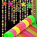 Glow in the Dark Neon Party Supplies: You will get 664 Ft /8 rolls of UV blacklight reactive neon paper streamers in four colors, each roll measures approx. 4.5 cm/ 1.7 inches in width and 25 m/ 83 feet long; 30 Ft/2pcs Star neon garland; 30 Ft/2pcs Round dot fluorescent garland; Enough to decorate your party, put together to create a pleasant atmosphere. For convenience, these neon garland is pre-assembled, so you can hang them directly.