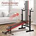 【Adjustable and Foldable】: The height of the deep squat rack can be adjusted in 6 levels for different arm lengths, and the foldable weight bench can save a lot of space in the home, whether it's in a cramped bedroom or in the garage.