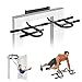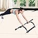 Wide grip curved ergonomic handles offer three grip options for wide, close, and hammer grip pullups; padded handles ensure comfort for sit-ups, push-ups, and dips