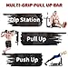Wide grip curved ergonomic handles offer three grip options for wide, close, and hammer grip pullups; padded handles ensure comfort for sit-ups, push-ups, and dips