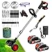 🌿【2023 Newest Electric Weed Wacker Set】 The cordless weed eater battery powered is multiple functions in one: grass trimmer/lawn edger/lawn mower/brush cutter. not limited by wires, you can mow anywhere. includes 2pcs 2000mAh high-capacity rechargeable battery operated and high performance motor, 20000 RPM engine speed. equipped with detachable wheels, hand weeder tool and reusable garden waste bag, make cutting work more efficient, you can enjoy weeding with your family!