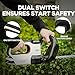 🏡【Double Start Safe Use Design】 The cordless battery driven string trimmer adopts a safety lock button design, greatly improving safety during use and preventing accidental startup. You need to simultaneously press the safety button and switch to start the battery powered weed wacker.