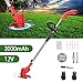 【HIGH-EFFICIENCY BATTERY】:This electric weed wacker cordless is equipped with 2.0Ah battery that can provide super battery life,with fast charger,so you can lawn trim the garden and more weeds.As such affords electric weed eater a more efficient use of energy which allows lawn edgers battery powered to have a better run time and longer tool life.