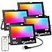 Smart Multi-Color Flood Lights: 2700K warm white light, lumen index 3000LM, suitable for daily lighting; CRI>85, provide 16 million colors and 4 color change modes, set the color of each light by DIY, match it to the scene you want, design your own outdoor holiday decoration lights, such as Halloween, Christmas, Valentine's Day, wedding, etc.