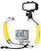SOLID CAMERA RIG WITH RUBBERIZED HANDGRIPS - Strong Aluminum Alloy Tray with Yellow Rubberized Handgrips is corrosion resistant and provides stable shooting on underwater dives as well as on land