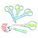 What You Will Get - You will receive 10PCS safety scissors in 3 different colors, 3PCS pink scissors, 3PCS green scissors and 4PCS blue scissors. Each kid scissor measures 5 x 2.5 inches.