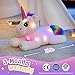 NICE GIFTS: Adorable and soft, our unicorn is a fairly great gift for kids. Kids can hold, hug and sleep with this colorful glow unicorn. Kids can have a playmate to play with and a companion to sleep with in dark nights so that they will not feel lonely or afraid. Also, it can be used at home as decoration.
