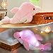 NIGHT LIGHT COMPANION FOR KIDS AFRAID OF DARK: Equipped with colorful LED lights inside, this cozy light up dinosaur plush toy will glow in the dark when turn on and will comfort you. It also helps both kids and adults relax when taking a nap in the afternoon or accompanying those scared of dark during bedtime, which will help reduce anxiety and help them self-soothe in order for a better relax.