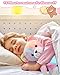 FLOPPY CUTE EASTER BUNNY :Cute Pink Stuffed Animal Bunny can play 30 children's songs, fluffy face glows with LED light;press the legs airbags, wiggle the ears. Furry little bunny is a thoughtful gift for children.