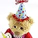 WELL-DESIGNED BEAR: This teddy bear is a well-designed, it has an exquisite appearance. The stuffed bear holds a cake with a candle, when it is turned on, the candle will glow. It is dressed up in birthday clothing, wears a party hat and a red T-shirt printed ‘Happy Birthday’. The soles of its feet is embroidered with a cake and the switch is put on its hand, you can find it easily.