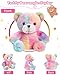 GLOW IN THE DARK: The cute light up stuffed teddy bear features a wonderful function of glowing in the dark, press the button on the left paw of the teddy bear plush, it will glow. The lights are the same color at the first few seconds, and they will change to colorful after that. It should be a good companion at bedtime, especially for those who are afraid of dark.