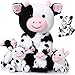 Adorable Family Set: the fluffy cow plush is vibrant and expressive; The mother cow has a zipper on her back that you can open to help her give birth to 4 baby cows; Ideal for a tea party or story time, these cute cow toys help little ones build social skills and improve imagination, and they can also serve as playing and sleeping companions to keep your sons and daughters growing up