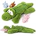 【SUPER SOFT MATERIAL】Cute crocodile plush toys are made of long plush fabric, filled with 100% PP cotton, which owns soft and comfy hand feeling, friendly to skin when hugging, offering your a comfortable cuddle experience. In additions, these materials are not easy to fade or tear, can be applied to play for a long time.
