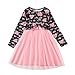 Design Style: Pink tulle dress design style, heart and letter print dress, elegant bow decoration, round neck long sleeve dress patchwork pretty tulle dress, will catch everybody's eyes. Neatly sewing, stretchy fabric, soft cotton lining, friendly to baby's skin. Your princess will really like it.