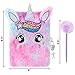 - UNIQUE DESIGN - Made of soft plush materiel and delicate unicorn embroidery. Each notebook is exclusive due to different dyeing. Gradient colors show cute unicorn faces. The diary also has unique cube horn.