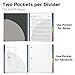 NOTEBOOK WITH POCKET DIVIDERS: 5 movable pocket dividers perfectly hold 11" x 8-1/2" papers. Multi-colored dividers and practical index tabs suitable for pages classifying, quick reach for the specific part. 10 extra tabs for replacement.