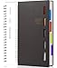 DETAILS - 1. The spiral binding is sturdy and flexible, with easy-to-turn pages. 2. Thick plastic cover is waterproof and not easy to bend. 3. Round corner design prevents paper from curling. 4. And it comes with 5 pcs of multicolor tabs.