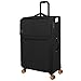 Features four double spinner wheels, recessed top and side carry handles, and a rubberized TPR non slip grip handle for easy maneuverability