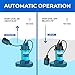 【Unique Design】: Unique water sensor switch with non-return valve drains water to the lowest suction level of 1/25inch without back flow. Designed for completely draining clean or slightly dirty water from flooded house, basement, sumps, window wells, water tanks, pools, cisterns, hot tub spas, and flooding in low lying areas.