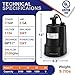 【Efficient Sump Pump】:1/2 HP High-Flow clean/dirty transfer water pump moves up to 3500GPH ; Pumps water up to 25-Vertical feet drain pump with 25FT power cord and pure copper wire motor, thermoplastic submersible pump is UL certified for safety and 100% manufacturer tested.