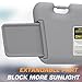 【BETTER CLOSE FIT】The visor design has been added a block light barrier, which solves the problem of sunlight Irradiates the eyes through the gap at the top of the visor. Escort your driving safety. Polarized car visor lens size: 12.6 inch (L) *5 inch (W). Length of block light barrier: 1.3 inch.