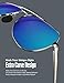 HIGH QUALITY FRAME - The polarized aviator sunglasses made with aluminum magnesium metallic alloy that is ultra light weight yet strong and durable. It comes with spring loaded hinged legs and adjustable silicon nose pads which allows for maximum comfort and flexibility.