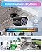 【IP66 Waterproof Dust-Prevention & H.265 Compression】Built with durable aluminum alloy material & strict inspections, these wireless security camera systems can withstand harsh conditions. Whether it's sunny or rainy, The wireless security camera system outdoor, can be used both indoors and outdoors. The system employs advanced H.265+ compression and is equipped with a 4TB hard drive, allowing for the storage of audio-enabled videos for extended periods without missing any important moments.